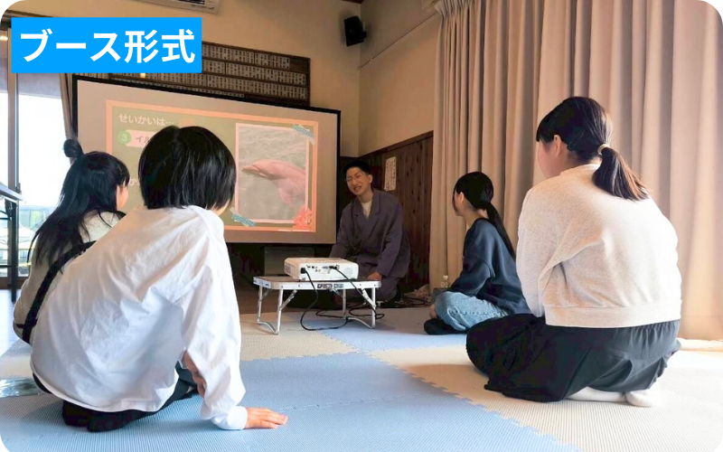 | 実施形式 | 一斉講演形式(全員で同時に実施) ブース形式(来た人から順次実施) |
